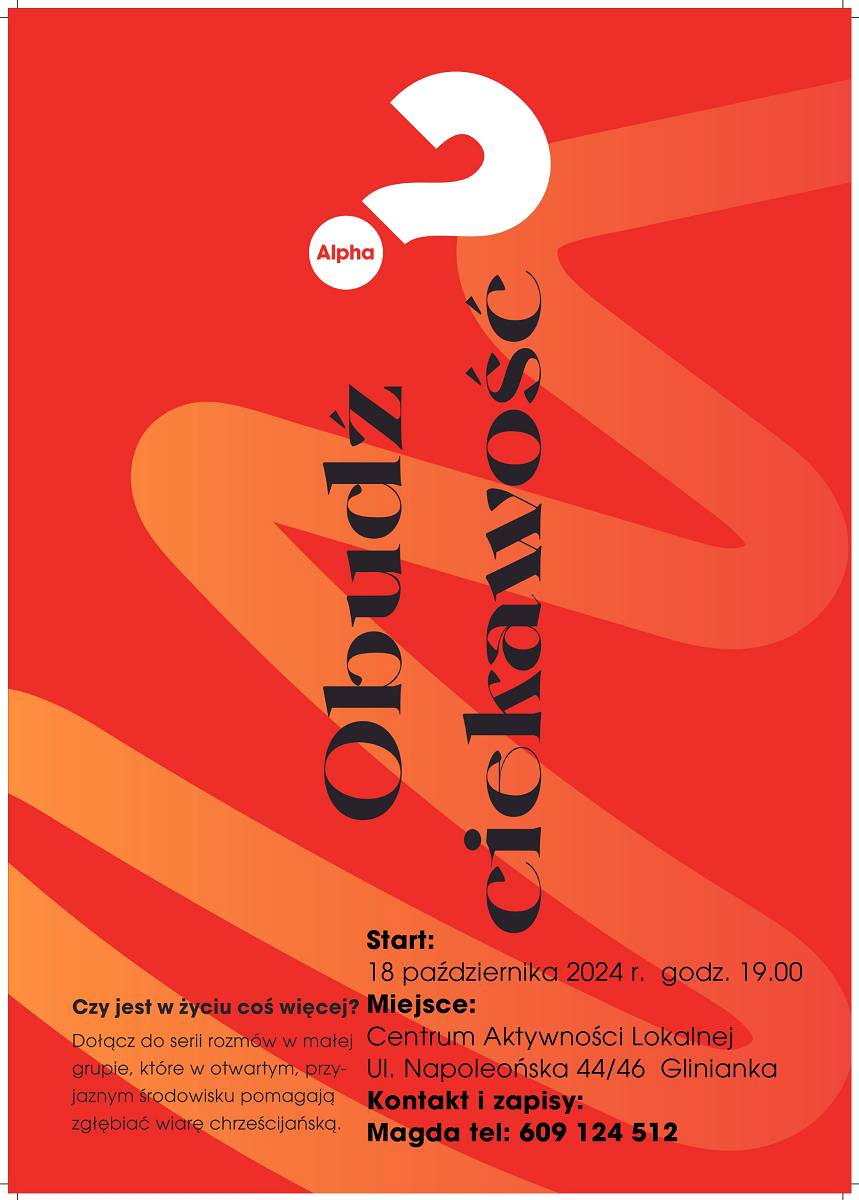 Kurs Alfa dla dorosłych w Glinianceprzez adminmt10 października 202414 października 2024 Zaczynamy 18.10.2024 poczęstunkiem kolacyjnym.